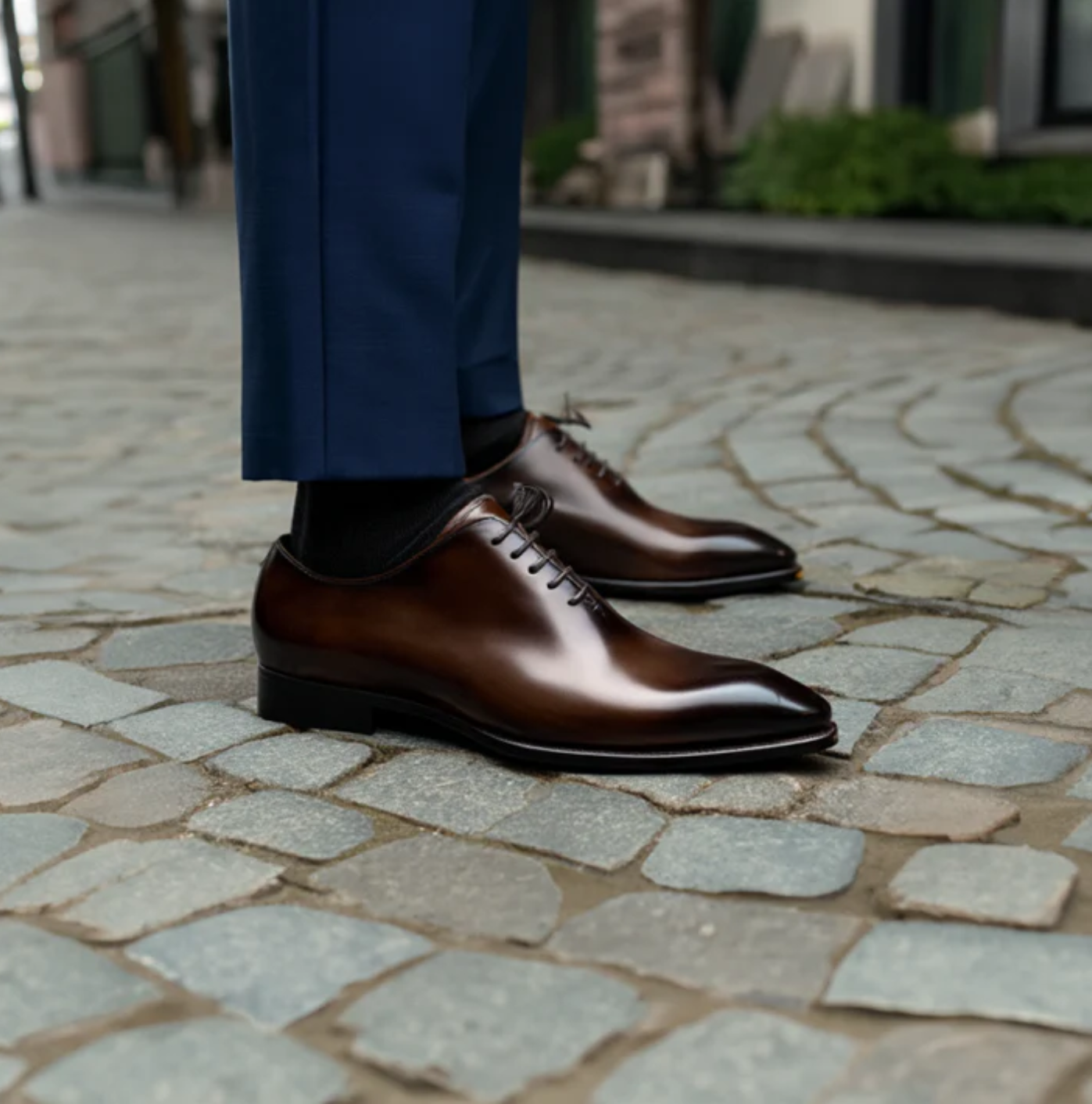 Men’s Vintage Brown Leather Derby Shoes – Handcrafted Style